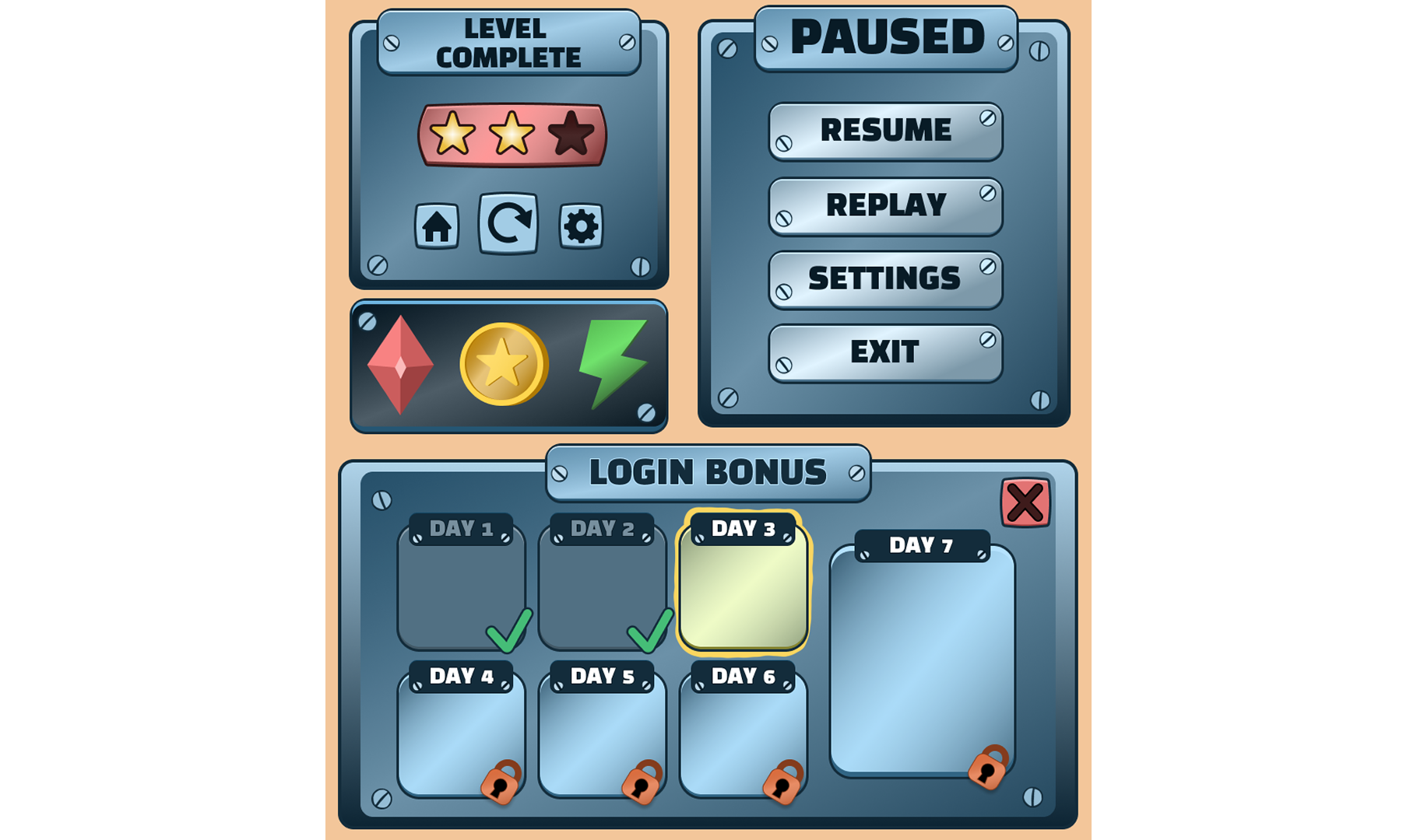A personal project I made to see what UI I could create in only one afternoon. Art and design done by me.